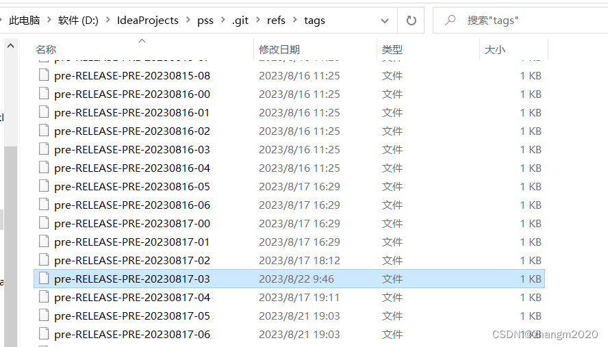 去该项目下的.git文件里找到报错文件,本例中即为:.git/refs/tags/pre-RELEASE-PRE-20230817-03