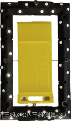 For small and complex work, if it cannot be scanned completely on the turntable, the workpiece needs to be clamped in a fixture that has measured the coordinates of the global landmark points in advance. The workpiece should be fixed and the global coordinate points should be imported as the splicing reference before measurement to improve the measurement accuracy. It is clamped in a frame in which the coordinates of global landmark points have been measured in advance; global coordinate points are imported as splicing benchmarks before measurement to improve measurement accuracy;