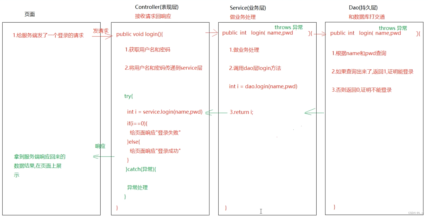 public static void main(String[] args) { // 1.定义一个用户名,代表已经注册的用户 String username = "root"; // 2.创建Scanner对象,录入用户名 Scanner sc = new Scanner(System.in); System.out.println("请输入您的用户名:"); String name = sc.next(); // 3.判断用户名是否和已经存在的用户名一致 if(name.equals(username)){ System.out.println("登陆成功"); }else{ // 利用有参构造给异常写原因 try { throw new LoginUserException("登陆失败了,用户名或者密码有问题"); }catch (Exception e){ System.out.println(e.toString()); } } }