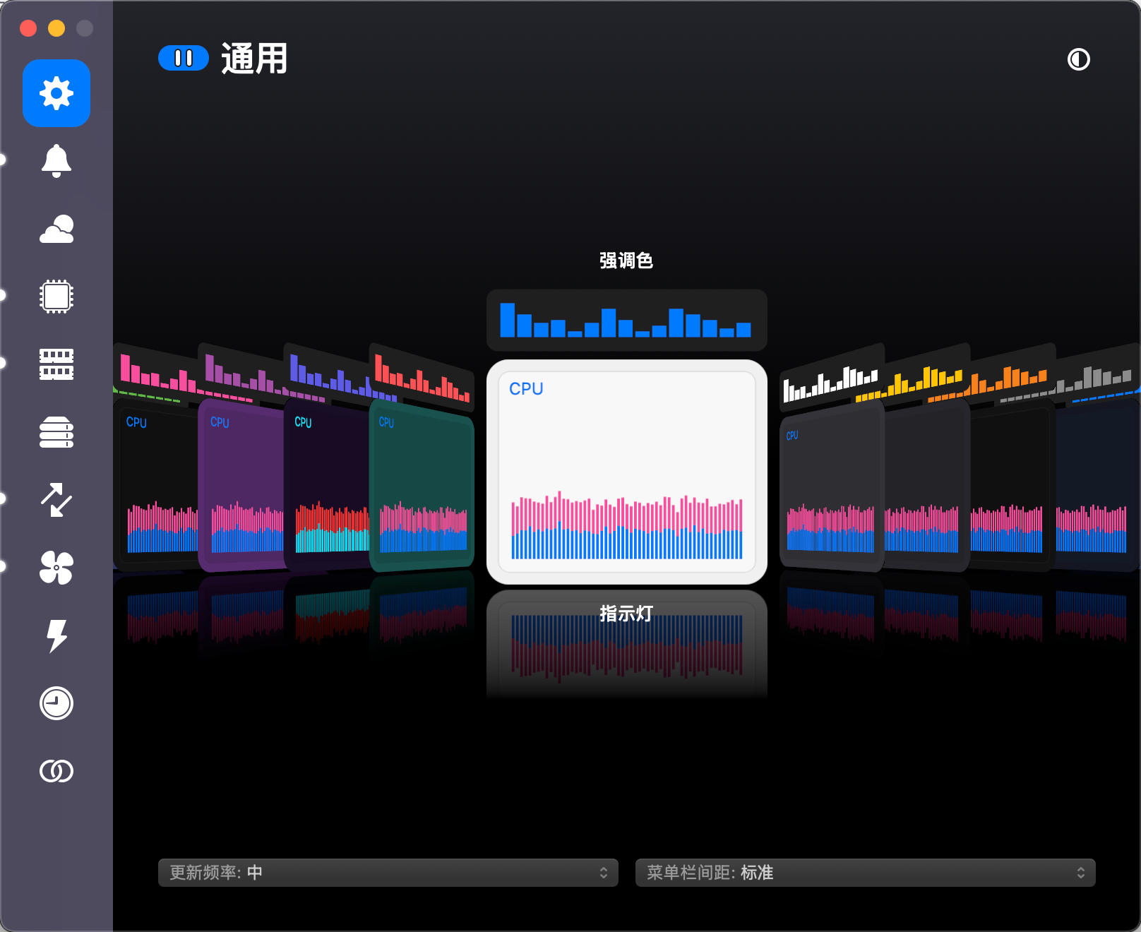 iStat Menus 支持按核心查看负载,图表更新毫秒级,真的是“谁在吃,吃了多少,一眼分明”。