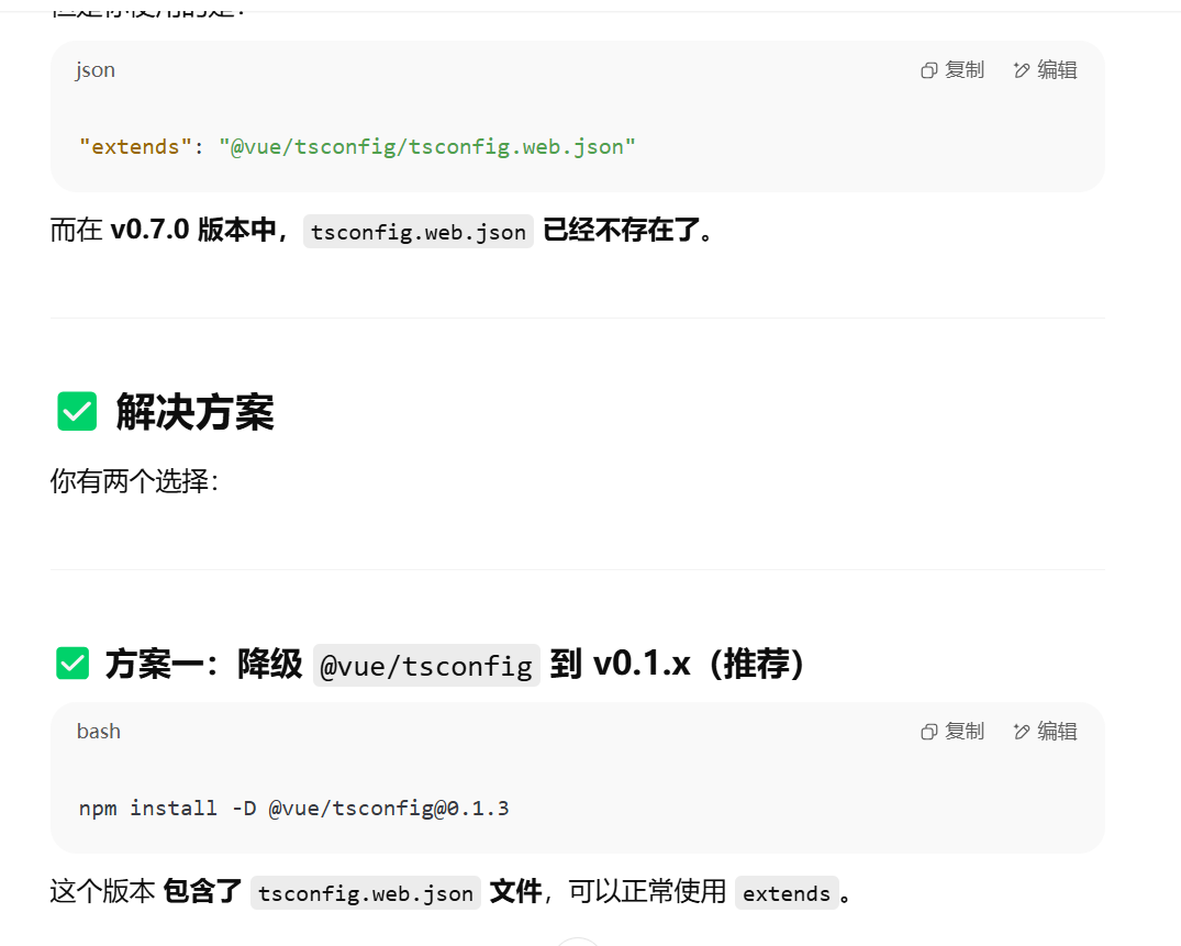 解决:① 降级 ②替换新版的 tsconfig 格式 (extends 替换成 tsconfig.dom.json )