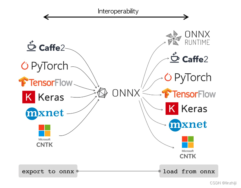 (和Java生成的中间文件可以在JVM上运行一样,onnx runtime引擎为生成的onnx模型文件提供推理功能)在训练模型时可以使用很多不同的框架,比如 Pytorch, TensorFLow, MXNet,以及深度学习最开始流行的 Caffe 等等,这样不同的训练框架就导致了产生不同的模型结果包,在模型进行部署推理时就需要不同的依赖库,而且同一个框架比如 tensorflow 不同的版本之间