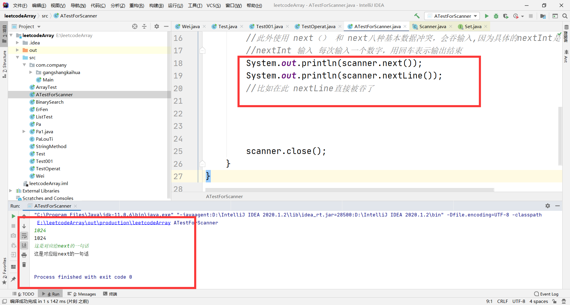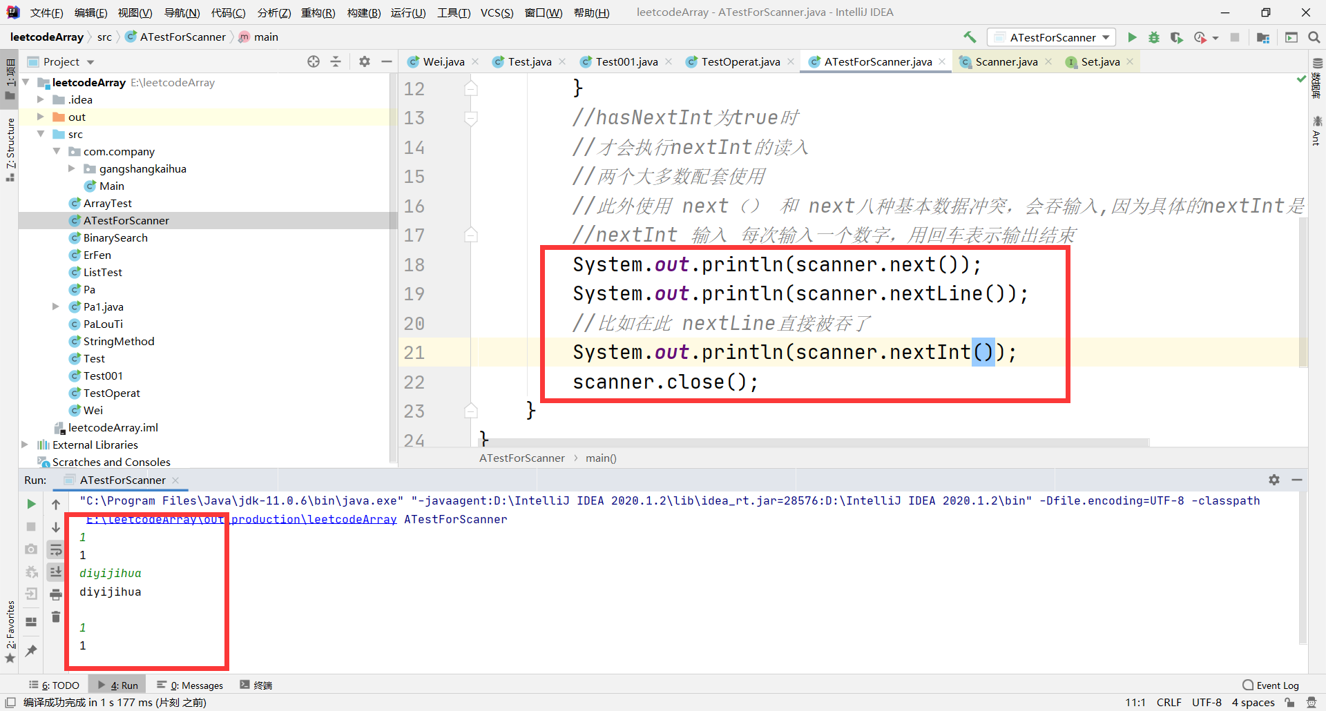 //此外使用 next() 和 next八种基本数据冲突,会吞输入,因为具体的nextInt是一块一块读取的