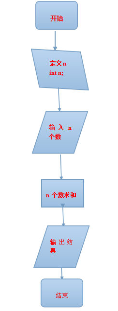 定义int类型的n,确定求和的范围,输入求和的数量,再把输入的字符串转化成数字,求和,最后输出。