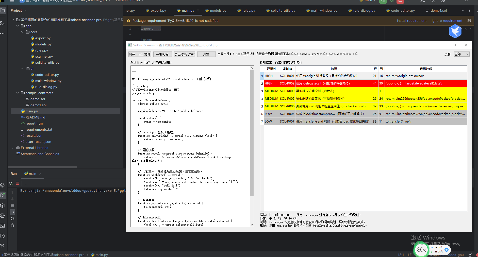 SolSec Scanner Pro —— 基于规则的智能合约漏洞检测系统(PyQt5 桌面版)