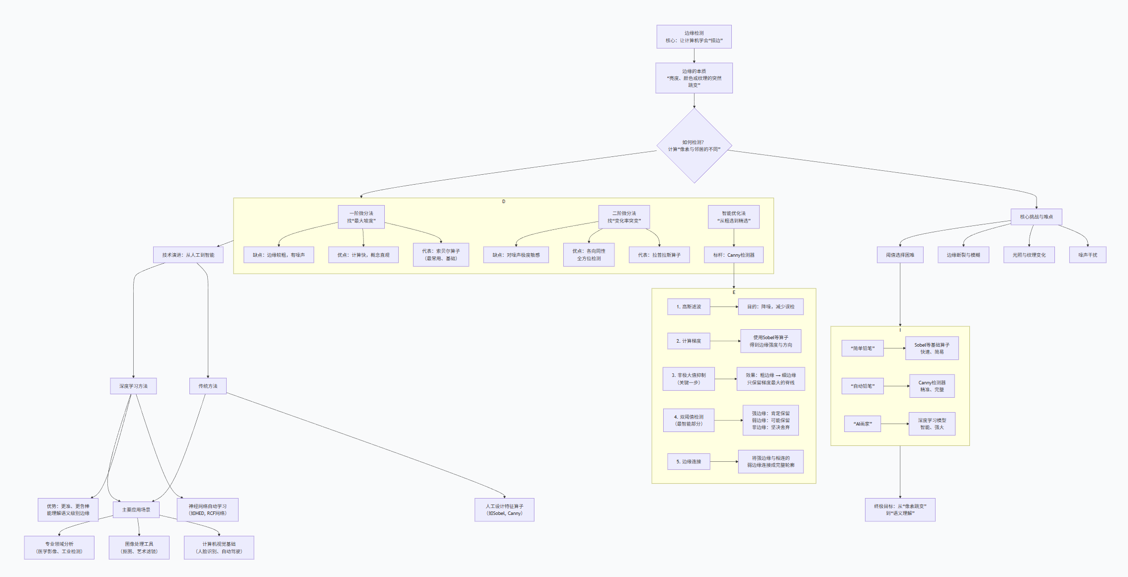 这张框图清晰地展示了边缘检测技术从原理到应用的全景: