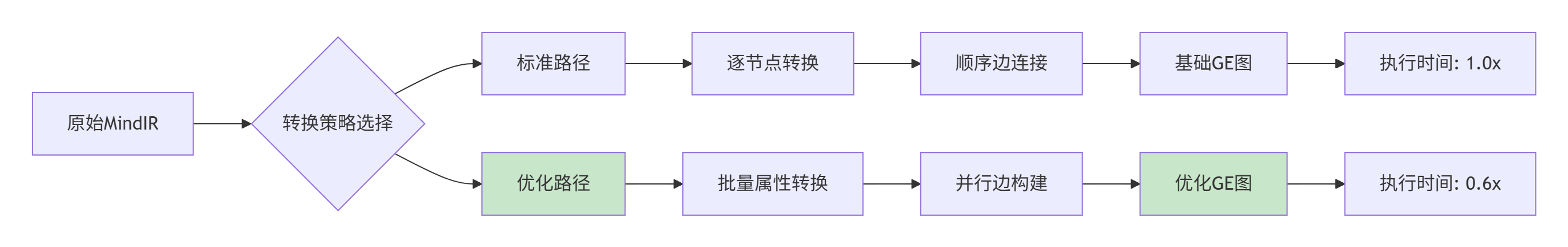 设计核心思想:不是简单的格式转换,而是语义对齐和优化机会识别。MindSpore的MindIR携带了丰富的训练时信息(如动态形状、控制流),而GE的IR更偏向静态、确定性的执行图。适配器的智慧就在于如何在不丢失必要信息的前提下,完成这种“动态到静态”的平滑过渡。