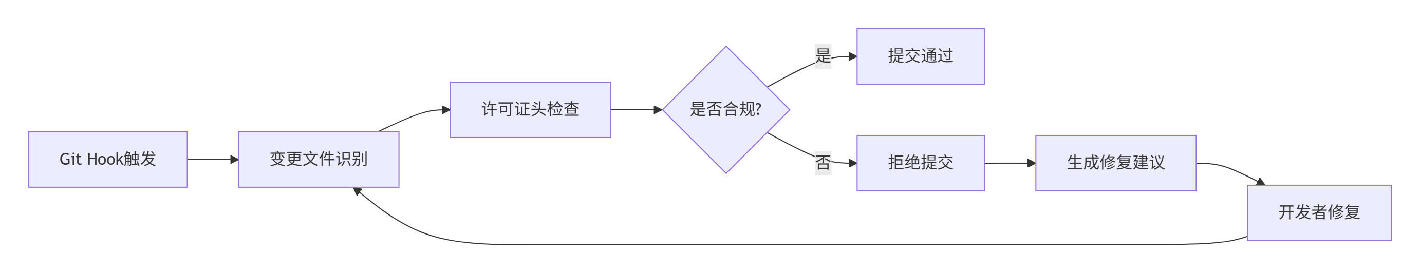 许可证检查的核心在于模式匹配算法和依赖关系分析。以下是关键的许可证头识别算法: