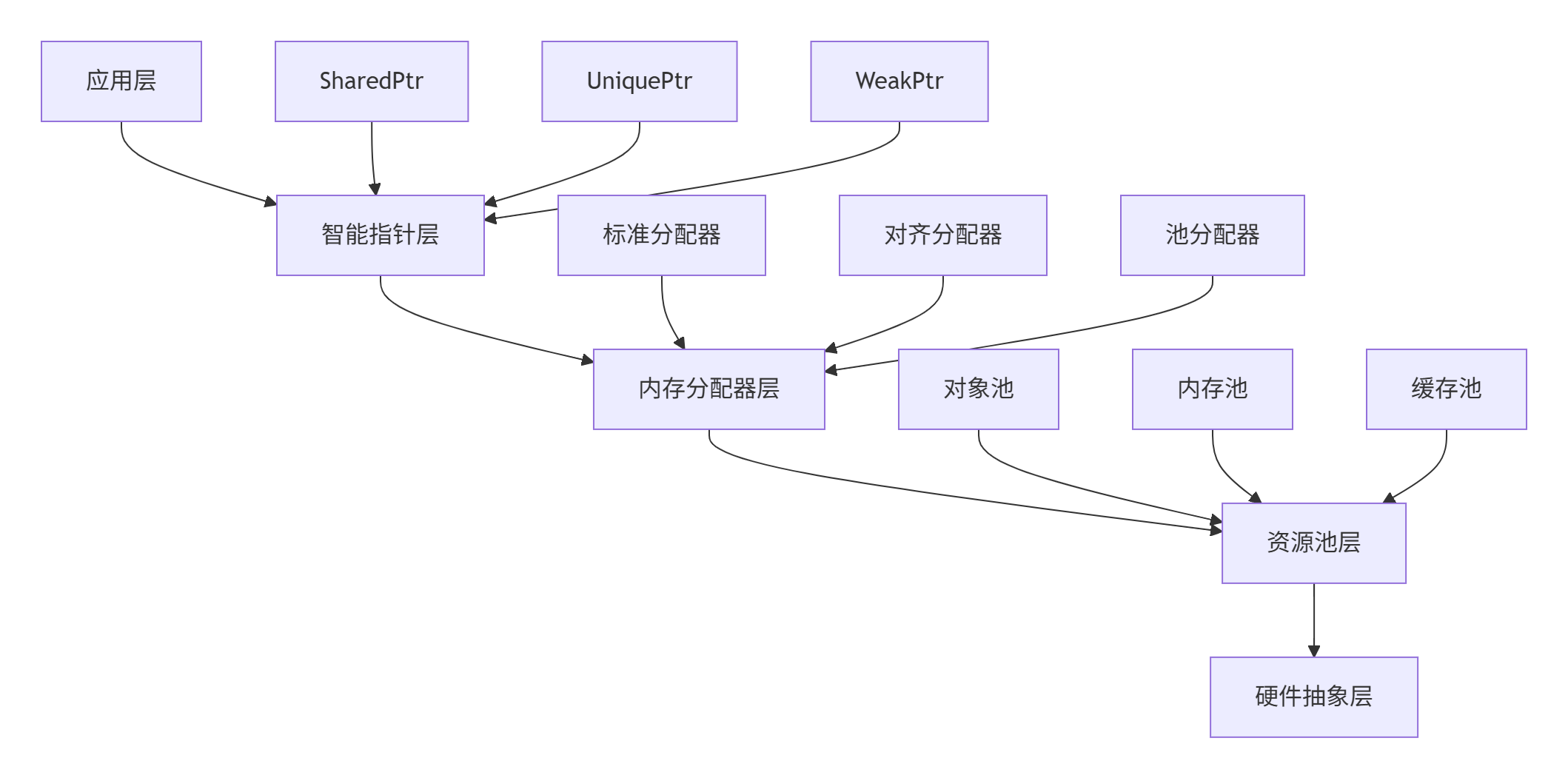 这种架构的精妙在于:每层只解决特定问题,下层为上层提供可靠基础。我在多个大型项目中验证,这种设计能将内存相关bug减少85%。