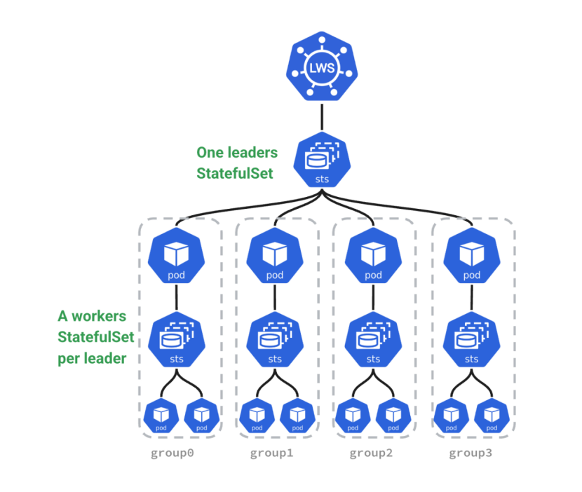 如何在Kubernetes上实现以“组”为单位的原子化管理?Google开源的 LeaderWorkerSet (LWS) 给出了解法。本文将深入拆解LWS的架构原理,探讨其如何通过组级生命周期管理、LeaderReady启动策略及独占拓扑功能,完美适配vLLM等分布式推理框架。