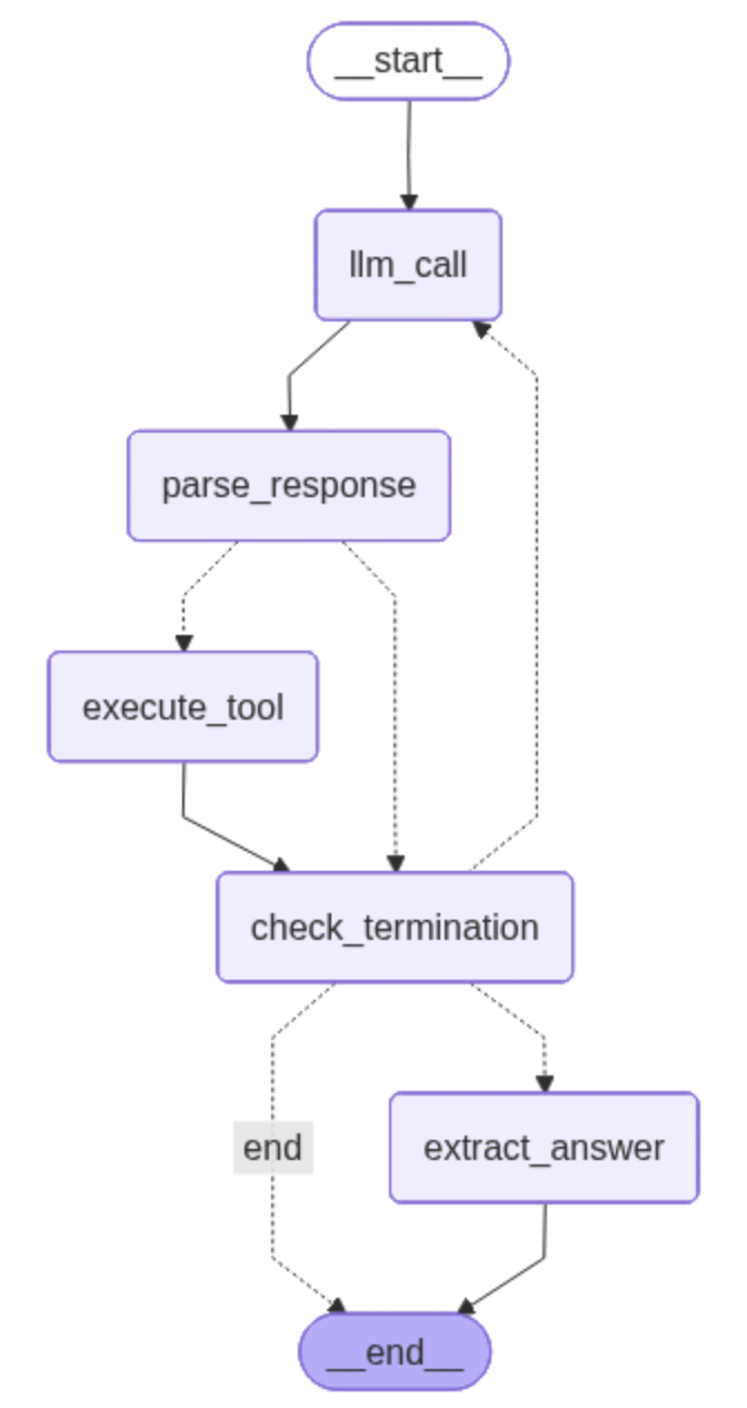 由于我们的目的并非批量评测,因此需要将开源项目中的react_agent简单改造以更适合单次任务调用。不过笔者选择了重新实现一个LangGraph版本的Agent引擎。